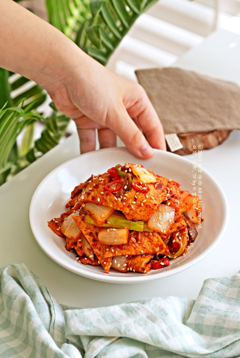 저는 사각어묵을 준비했는데 두께가 좀 더 두꺼운 제품을 선택했어요. 썰어서 볶을 생각인데 조금 더 두꺼운 제품을 구입하면 식감이 조금 더 좋아질 것 같아요. 대파 15cm 1/2개, 양파 1/2개를 준비합니다. 0.5~0.6cm 두께로 썰어주세요. .양념이 고르게 배어들도록 썰어서 고르게 볶아주어야 합니다. 반찬으로 드셔도 좋지만 넉넉하게 볶아서 김밥 재료로 활용하셔도 좋습니다. 파를 작은 조각으로 자릅니다. 양파 1/2개를 썰어줍니다. 이것이 재료를 준비하는 데 필요한 전부입니다. 2. 고추기름은 식용유 2.5T, 고춧가루 1T, 다진마늘 0.5T, 다진대파 4T를 넣어주세요. 가스렌지를 켜지 않은 상태에서 위의 재료를 잘 섞어주세요. 3. 불을 켜지 않고 섞어주세요. 이제 잘게 썬 오뎅과 양파를 넣고 양념이 고르게 섞일 때까지 섞습니다. 위생장갑을 끼고 골고루 섞어주세요. 2분 정도 방치해 주세요. 불을 켜지 마십시오. 2분 후에 볶아주세요. 4. 약불로 2분 정도 볶은 후 약불로 20초 정도 볶아서 고춧가루 냄새를 없애고 상큼한 감칠맛을 더해줍니다. 너무 오래 볶으면 고춧가루가 탈 수 있으니 20초 정도 고르게 볶아주는 것이 맛의 비결! 5. 물을 추가합니다. 물 50ml를 추가합니다. 촉촉해질 때까지 끓이세요. 간장(양조) 1T, 굴소스 1T, 맛술 1T. 위의 재료를 추가합니다. 이제 양념이 잘 섞일 때까지 볶아주세요. 물이 줄어들 때까지 중간 불로 볶은 후 양념을 넣어주세요. 농도가 줄어들면 조청이나 물엿 1.5T를 넣어 윤기를 주고 잠시 더 볶아주세요. 매콤달콤한 어묵볶음 양념을 원하시면 이때 잘게 썬 청양고추 1개를 넣어주세요. 마지막에 참기름 1T와 후추 한 꼬집을 넣어 맛을 냅니다. 6. 완료되었습니다. 맛있어요 하하. 많은 분들이 인사를 남겨주셔서 보람이 있었습니다 ㅎㅎ. 적당히 청량한 맛이 입에 착착 붙는다. 물을 첨가하면 촉촉해지기 때문에 냉장고에 보관해도 딱딱하지 않고 단맛이 난다. 매콤한 양념을 원하시면 이렇게 볶아보세요. 당신의 아이도 그것을 좋아할 것입니다. Mj의 레시피 팁 요약입니다. 잘게 썬 고기에 기름, 고춧가루, 마늘을 넣고 섞어주세요. 2분 후 약한 불로 20초간 볶아주세요. 물, 간장, 맛술, 굴소스를 넣고 끓여주세요. 참기름, 통깨, 고춧가루를 넣어 마무리합니다.