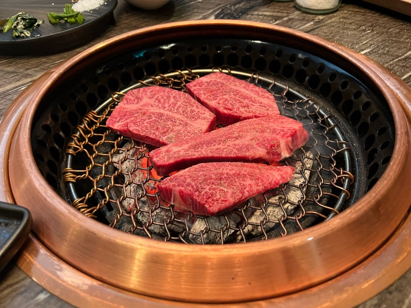 저희 룸을 담당해주시는 분이 원하는 굽기 정도에 알맞게 직접 고기를 구워주시고 한 점씩 접시에 놔주세요.