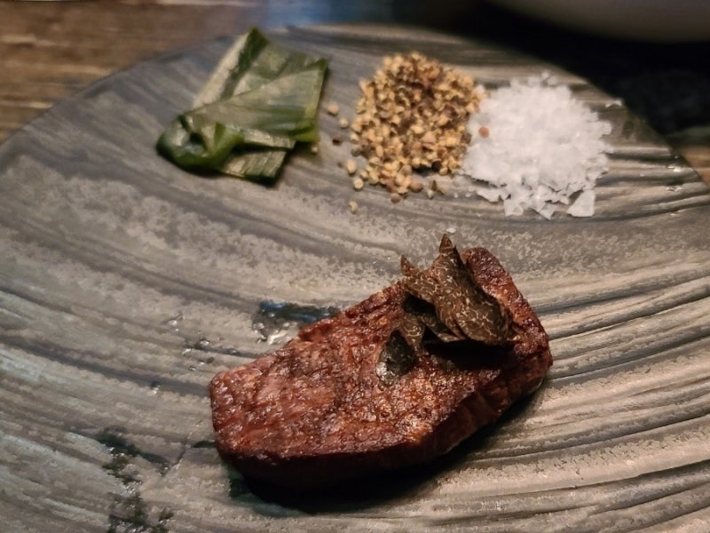 담백한 안심(샤또브리앙)에 블랙트러플 올려서 한 점- 트러플향 너무 좋아하는 ,,, 나 첫 점부터