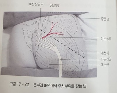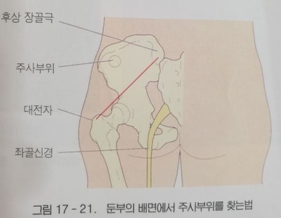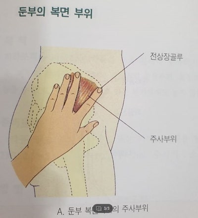 주의사항 – 약처방전 카드, 인쇄물, 복약원칙(7rights)을 확인하세요. – <7rights>: (정확한) 복약, 복용량, 대상, 투약 경로, 시간, 기록, 교육(목적 및 주의사항) – 커튼으로 프라이버시 보호 – 바늘을 90도 각도로 유지하고 빠르게 찌릅니다. 주사기 바닥을 잡고 내부 튜브를 당겨서 기록합니다. 약을 천천히 주입합니다. 주사기를 뺄 때에는 신속히(역류시 피가 보이면 주사기를 버리고 약을 다시 세팅한 후 IM을 한다) – 사용한 주사기의 뚜껑을 다시 씌운다. 소독제 패드와 주사기를 의료 폐기물 전용 용기에 폐기하세요. 필수품 – 복약카드 또는 인쇄물 – 일회용 멸균주사기 – 소독솜, 손소독제 – 의약품, 트레이, 간호기록부 – 폐기물 훼손 전용 용기 엉덩이 IM 주사 부위. 1) 엉덩이 등쪽 부위 : 엎드린 자세에서 엄지발가락을 안쪽으로 놓고 장골능선 아래 5cm 또는 대전자부와 후상장골극을 연결하는 대각선의 상외측극을 주사부위로 선택하고, 또는 엉덩이를 4개의 동일한 부분으로 나누는 상외측 영역. 2) 엉덩이 복부 부위 : 왼쪽으로 누워 오른쪽 무릎을 구부린다. 간호사는 환자의 왼손 손바닥을 환자의 오른쪽 대전자부에, 집게손가락을 전상장골극에 위치시키고 가운데 손가락을 장골능선을 따라 V자 형태로 펼쳐 주사부위를 선택한다. 3) 허벅지 부위. : 앉거나 누워서 주사부위를 외측광근 제3분할의 중간부분 또는 대퇴직근 부위로 선택4) 중앙 삼각근 부위(팔 IM) : 어깨와 상완 외봉돌기 5cm 아래 앉거나 선 자세 또는 옆으로 누운 자세로 노출됩니다. 주사부위로 선정되었습니다. 기록 5/4 오전 11시 30분 수술 후 통증을 호소합니다. PRN 처방에 따라 Tridol 50mg/ml을 오른쪽 엉덩이 복부 표면에 IM 투여했습니다. 주사 부위에 붓기나 불편감에 대한 불만은 없었습니다. 이상반응 발생 시 전화 교육을 받았습니다. (sn 시그니처) Lessons & Feedback – 얇은 앰플은 보통 2cc 기준입니다! 그래서 주문서에는 1회 주사당 50mg이라고 되어 있고 앰플에는 50mg/ml이라고 적혀 있습니다. 1cc만 빼면 앰플에 있는거 다 빼내야해요 (1ml = 1cc. 50mg/ml가 50mg/ml이면 1ml에 50mg이 녹아있으니 1cc만 빼면됩니다) – 트리돌(진통제) 복용 후 15~30분 후에 효과가 나타납니다. 성인연습 중에 배운 내용을 잊지 않도록 기록하는 것입니다. 실수가 있으면 알려주시기 바랍니다.