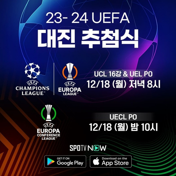 챔피언스리그 16강 조추첨식 방송 2023~2024 UEFA 챔피언스리그 경기일정 16강 조 편성 결과 12월 18일 유로파리그 UCL 조 추첨식 방송채널 다시보기 챔피언스리그 16강 및 유로파리그 16강 플레이오프 조추첨식 김민재와 이강인의 운명이 쏠린다. 18일 오후 8시에 방송된다. 자세한 조 추첨 방송 시청 방법을 안내해 드립니다. 챔피언스리그 조 추첨 방송 보러 가세요.