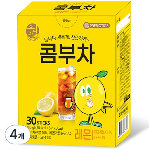 콤부차 레몬 4가지 맛 칼로리 몽베스트 콤부차 버라이어티 팩