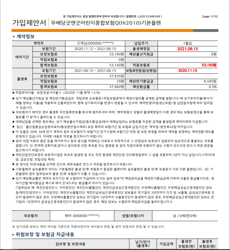 “시력치료” 보험을 해제했습니다. 일반 근시/원시/난시는 보험 적용 대상이 아닙니다. 고도 근시 및 고도 난시만 보상 대상이 됩니다. 비효율적인 것 같아서 제거했습니다. 또한 구성요소가 아닌 거의 모든 성인을 대상으로 하는 중대질병보장도 있는데 중대질병 10개를 넣었는데, 대골절/수술 5개는 부정교합일 경우에는 팔다리 골절은 보장이 안되기 때문에 제외하고, 보상기준은 너무 높으니 패스, 각종 소아암과 소아백혈병 제외 암진단과는 반대로 암진단의 범위를 넓히는 것이 위의 두 가지를 포함하더라도 다른 소아암을 보상하는 방법이라고 합니다. 유사한 암이 배제되었지만 전반적으로 상대적으로 유리한 구성이므로 결정하기 전에 신중하게 생각하십시오. 그러면 그렇게 해. 30세, 100세 태아보험 만기를 생각하면서 시나리오를 다각도로 재구성해보니 이게 우리에게 맞는 일이라는 걸 알 수 있어서 견적을 내고 계약을 진행했습니다.