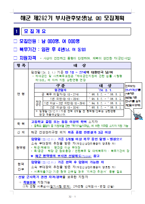 안녕하세요! 육군교육입니다. 오늘은 해군 부사관 제282기 채용 일정과 시험 응시자에게 도움이 될 수 있는 관련 정보를 소개해드리겠습니다. 모집 일정